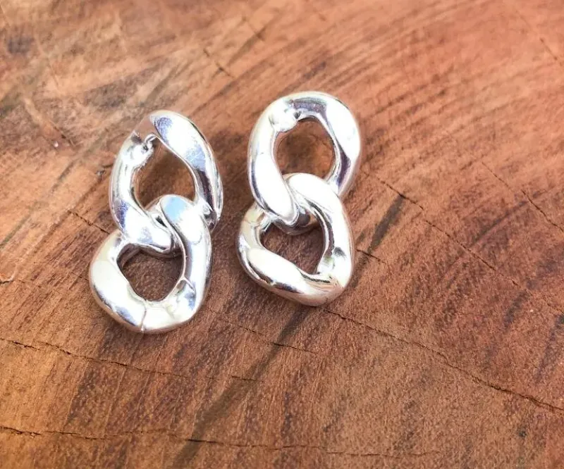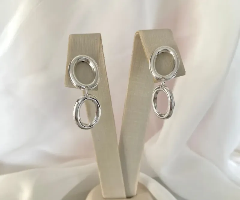 Brinco duas medalhas lisas p e m prata...